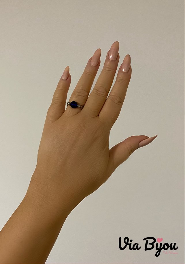 The central element of this ring is a shiny dark blue ball placed in the middle, complemented on each side by surgical steel beads. Rings from the VIA BIJOU collection are solid-colored and with some types of rings from the VIA BIJOU collection it is possible to choose earrings or a necklace from the VIA BIJOU collection. This option is shown as a so-called possible combination for selected rings. All rings from the Via Bijou collection on our e-shop are designed and manufactured by us at Via Bijou. We hope that they will bring a little joy to your life.